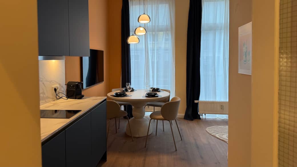 Krzesełko dla dziecka, Maszyna do kawy, Przybory kuchenne, Zmywarka, Kuchenka, kuchenka mikrofalowa, Lodówka, Przyprawy, Opiekacz